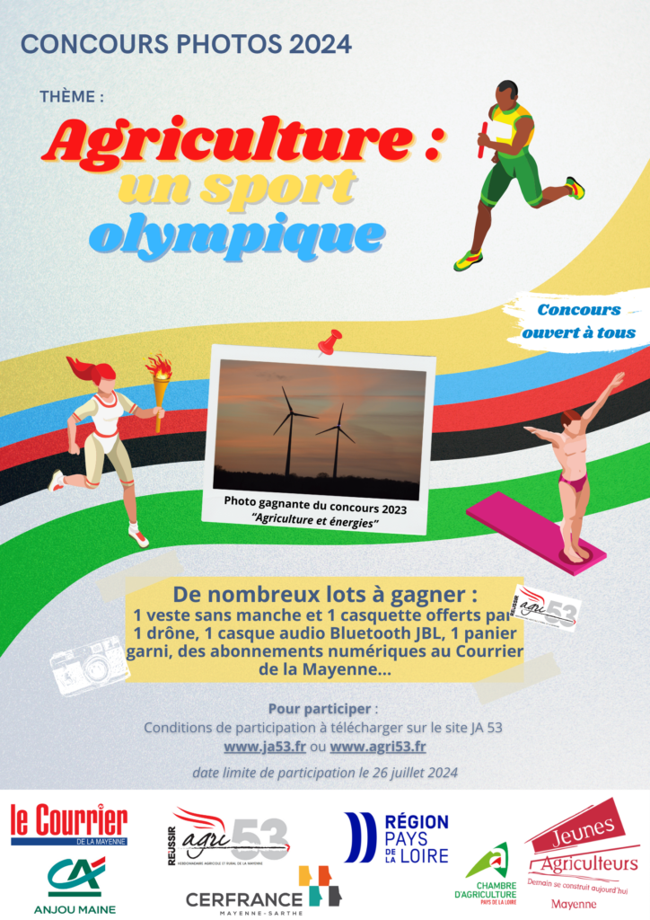 Le but de ce concours photos est de mettre en valeur l’agriculture mayennaise. Année exceptionnelle, thème exceptionnel !  Cette année, les JA ont décidé de lier l’agriculture et les jeux olympiques. Soyez inventifs !