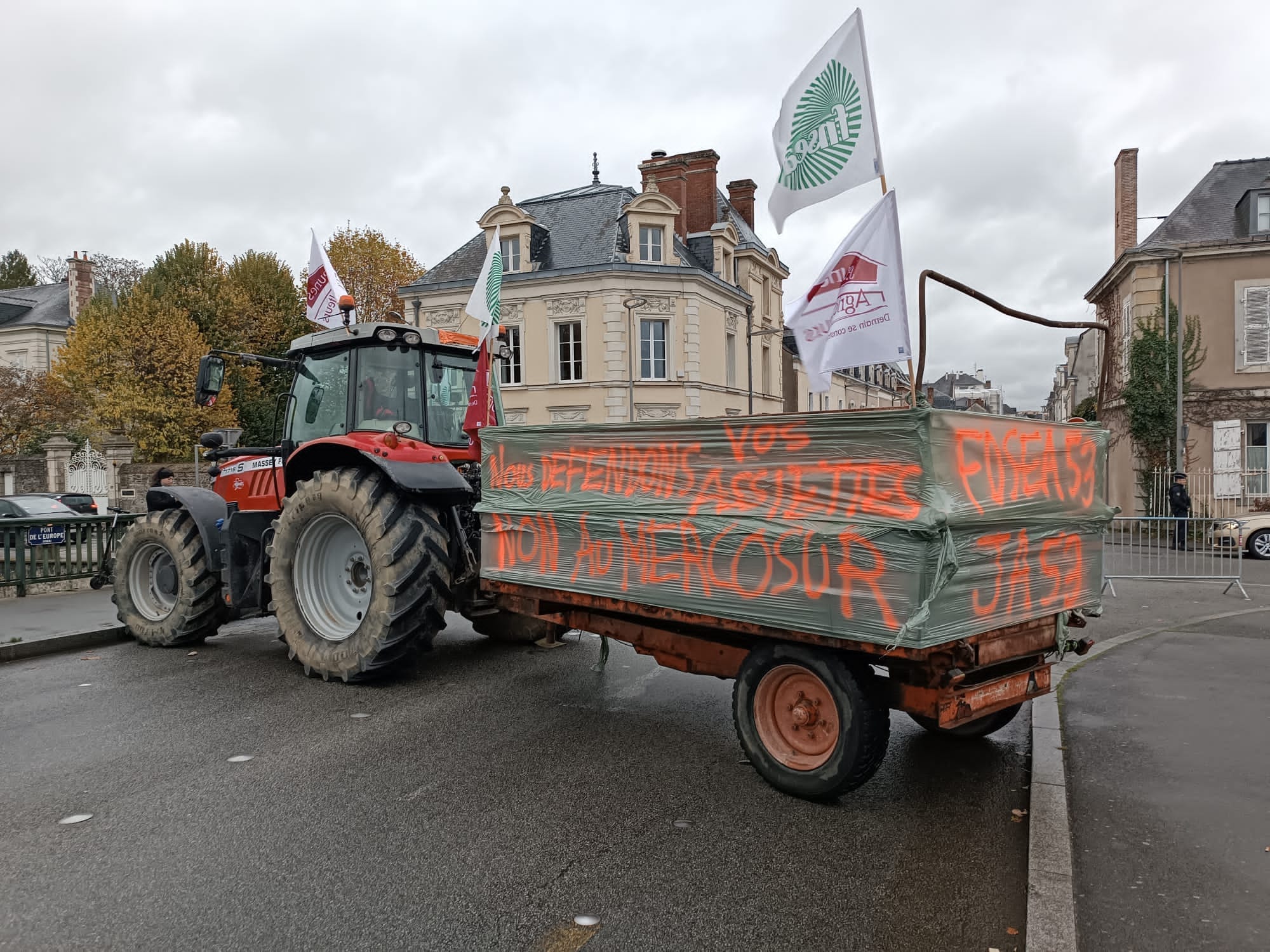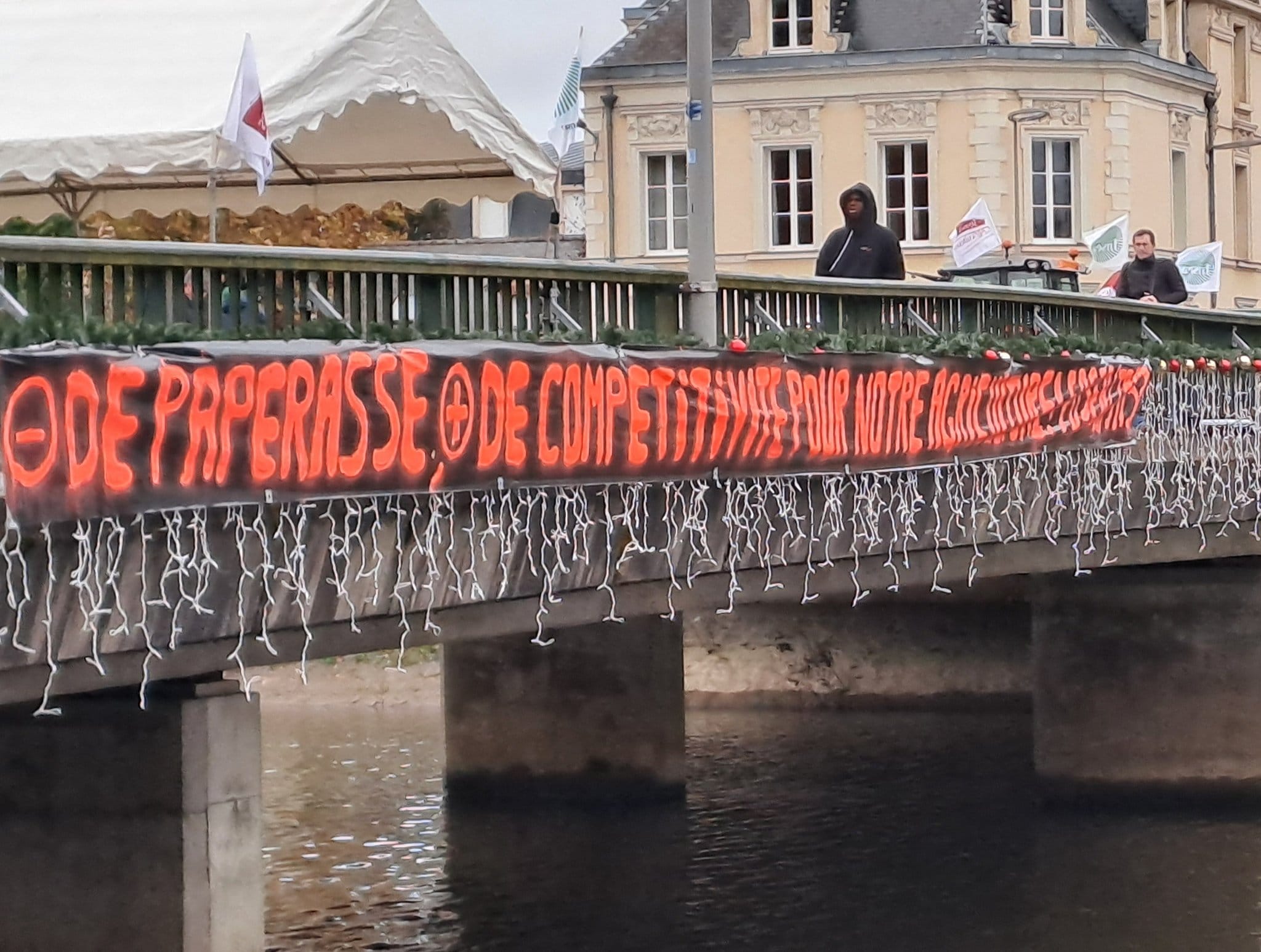 Le Pont de l ‘Europe de Laval est bloquĂ© !!! Les Jeunes Agriculteurs de la Mayenne et la FDSEA de la Mayenne dĂ©marrent leur action pour dĂ©fendre notre agriculture et nos assiettes !