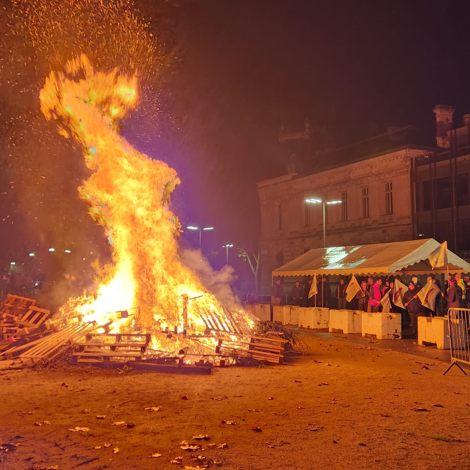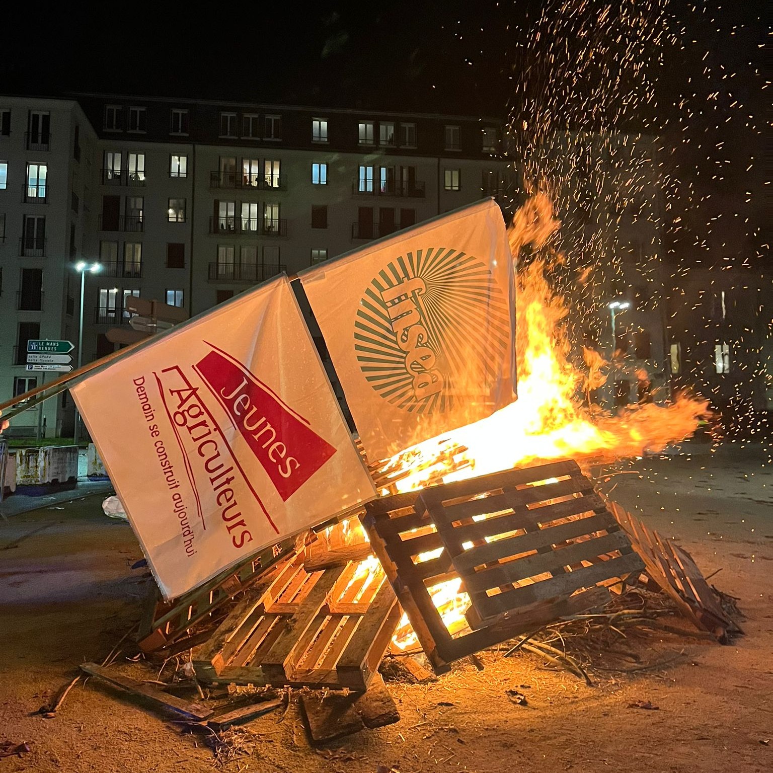 Les Jeunes Agriculteurs de la Mayenne et la FDSEA de la Mayenne se sont mobilisĂ©s lundi 18 novembre 2024. Le pont de l’Europe Ă  Laval a Ă©tĂ© bloquĂ© et Ă  19h45 un feu de colĂšre a Ă©tĂ© allumĂ©.đŸ”„