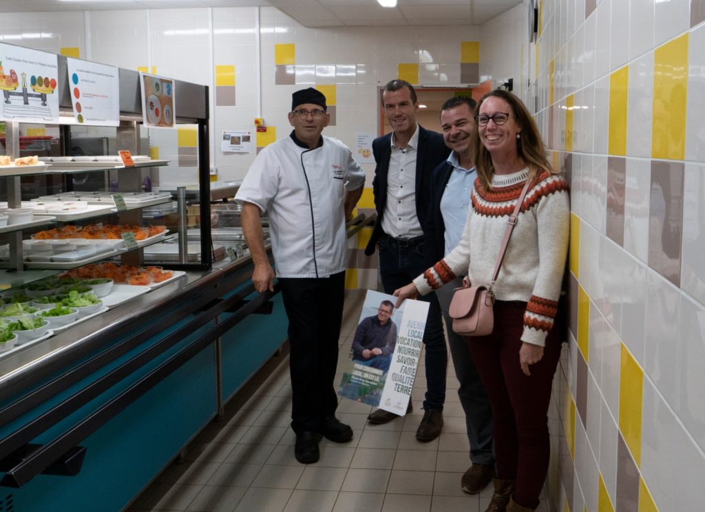 Tout d’abord auprès des plus jeunes, au moment du repas. En effet, le mardi 11 octobre ce sont près de 1200 élèves de la Communauté de Communes du Pays de Meslay-Grez qui ont pu profiter d’un repas 100% local. Les JA et la Chambre d’agriculture ont soumis aux chefs de cuisine des établissements une liste de producteurs locaux auprès desquels ils pouvaient se fournir. Certains cuisiniers ont même précisé que grâce à cette action, ils découvraient des fournisseurs locaux avec lesquels ils souhaiteraient travailler plus régulièrement.